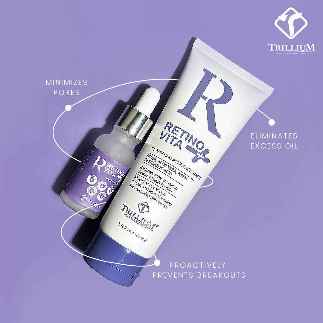In the pursuit of flawless skin, finding the right products can feel like an endless journey. If acne and blemishes are your main concerns, look no further than our RetinoVita+ Anti Acne Serum and Facewash. These powerhouse products work together to combat acne, refine skin texture, and restore your skin's natural radiance.